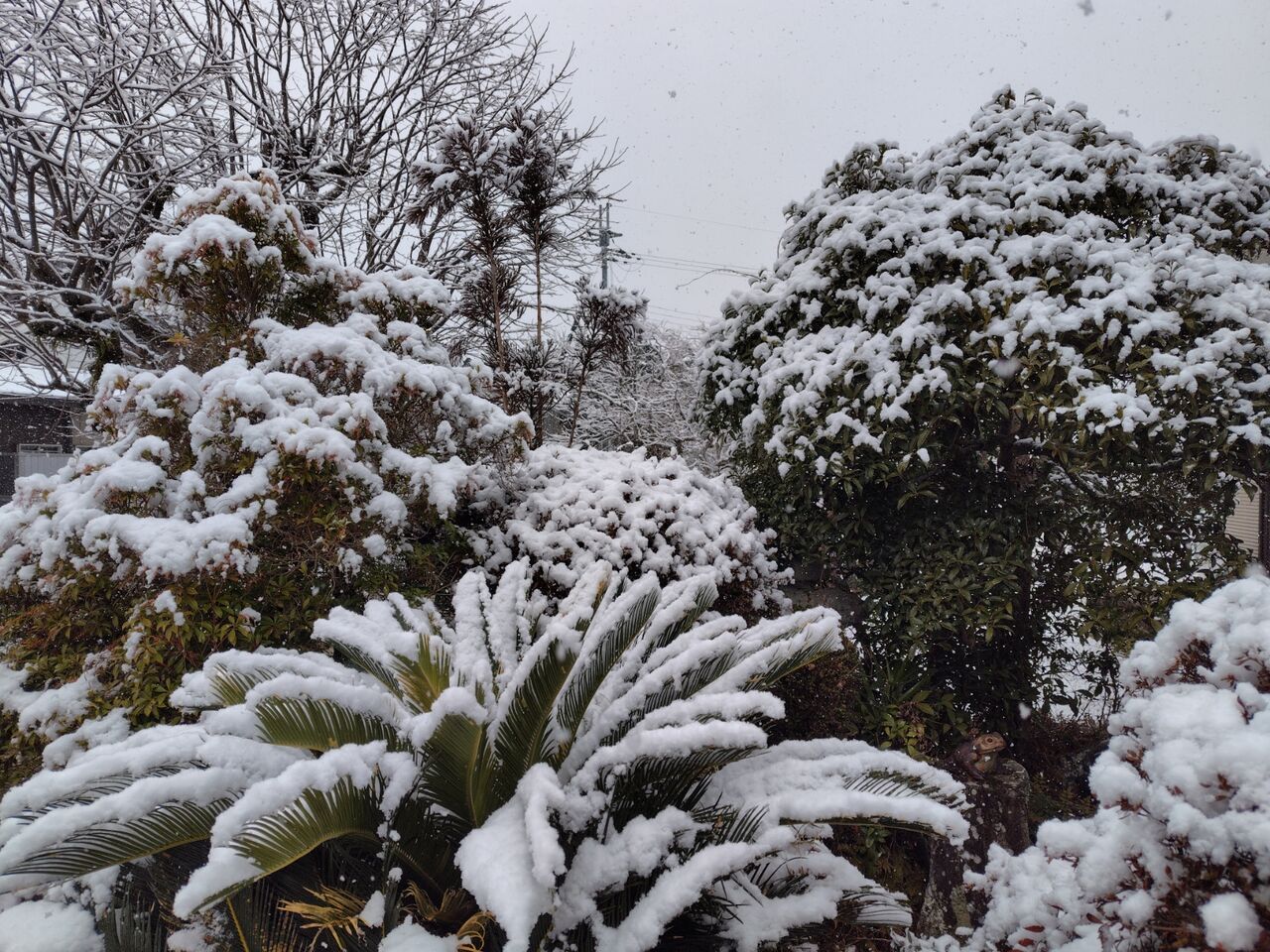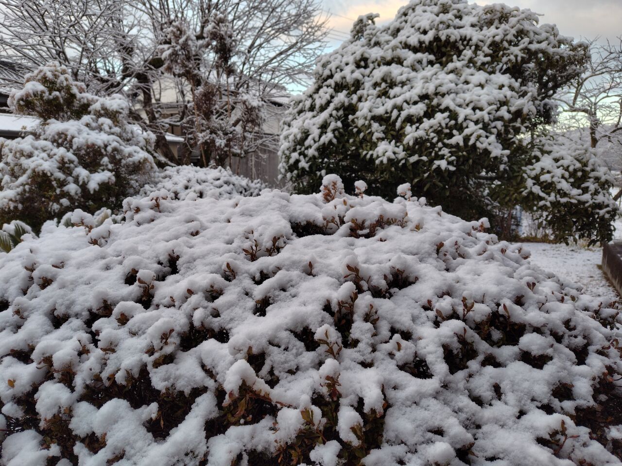 昨朝、離れから屋外に出たら雪が積もっていました。