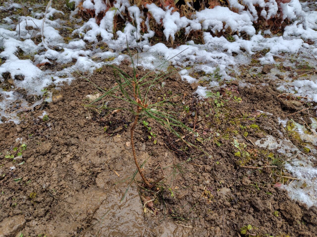 一昨日、山仕事から持ち帰った松の苗木を裏庭に植えました。
