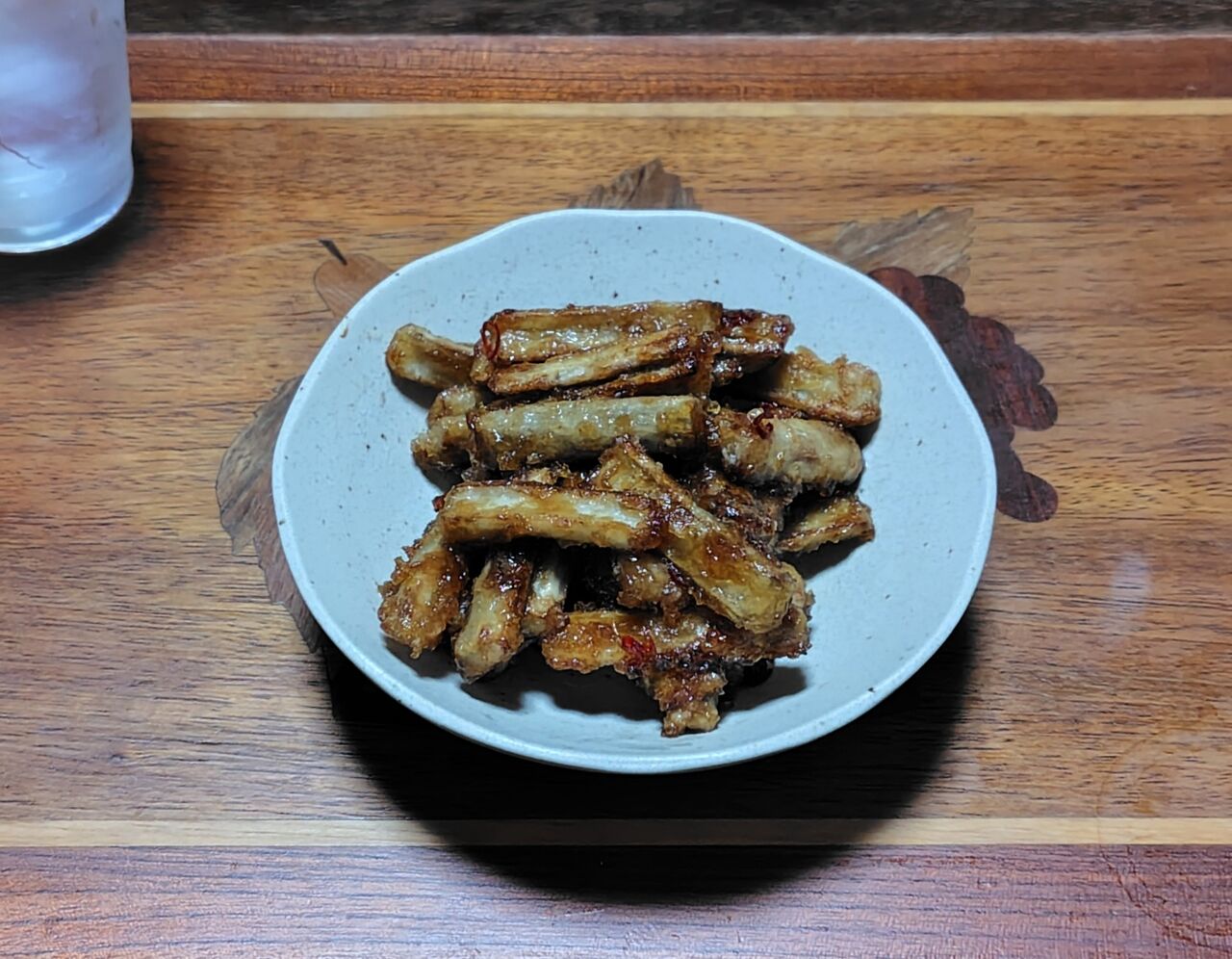 昨日の晩ごはんの1品として、ごぼうの甘辛揚げを作りました。