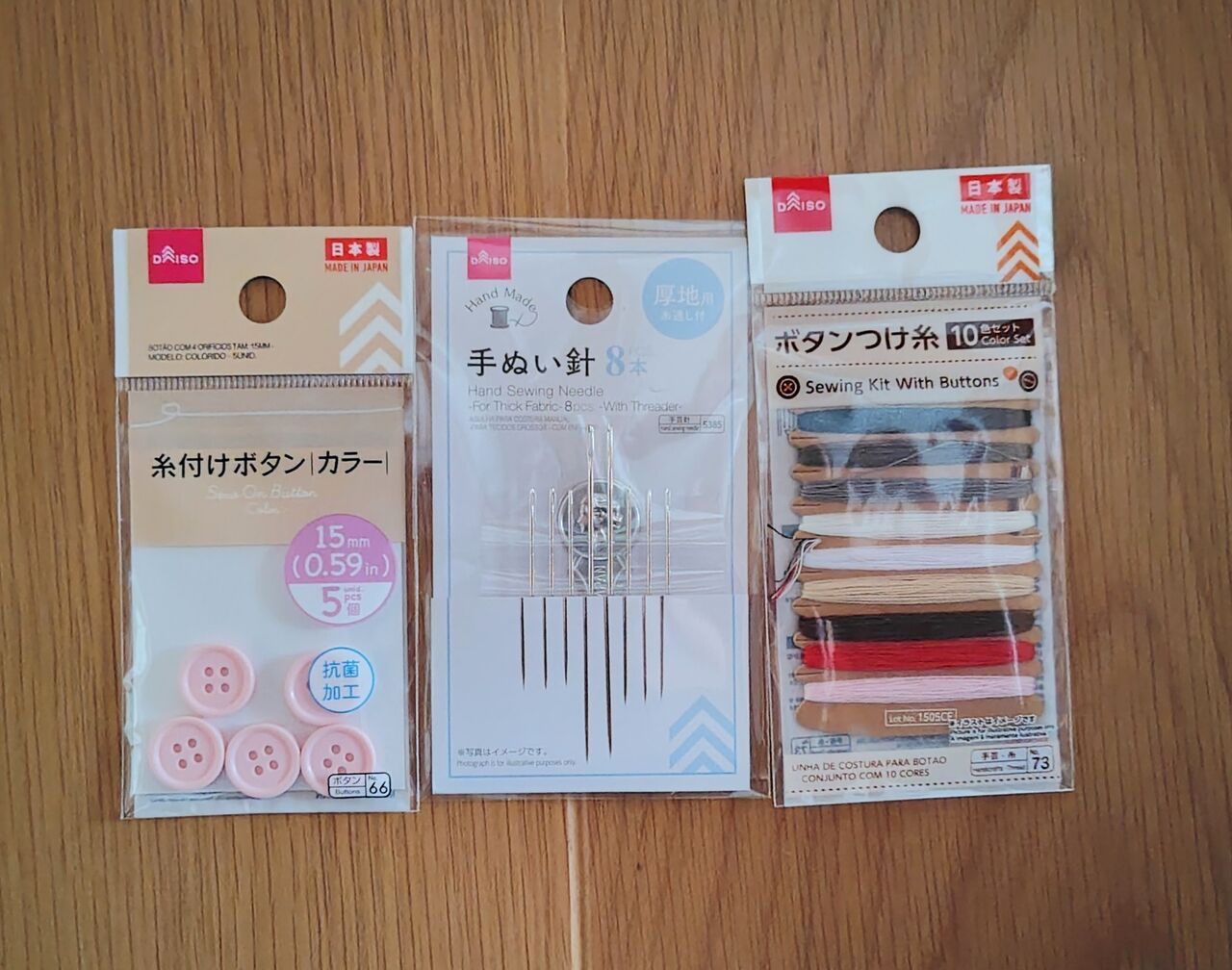 お袋のパジャマのボタンが1個なくなったので、ボタンと針と糸を買いました。