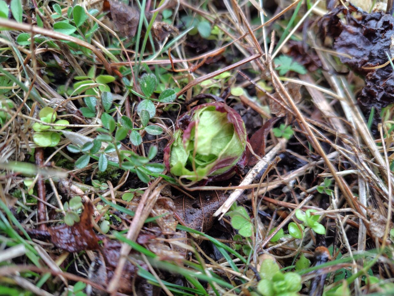 冷たい雨の中、蕗の薹(ふきのとう)がないか、庭で探しました。