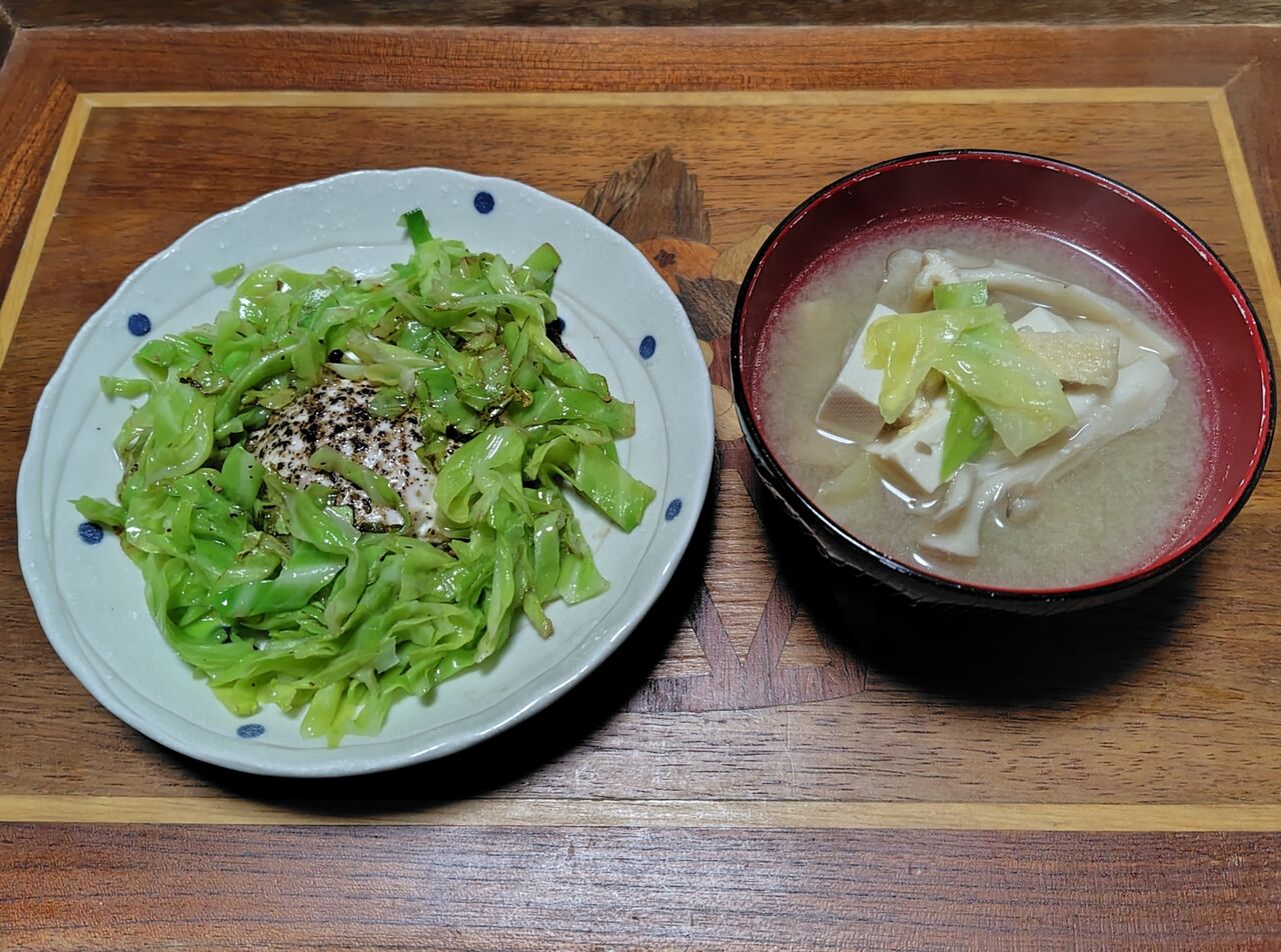 私は、具沢山の味噌汁と巣ごもり卵を作りました。