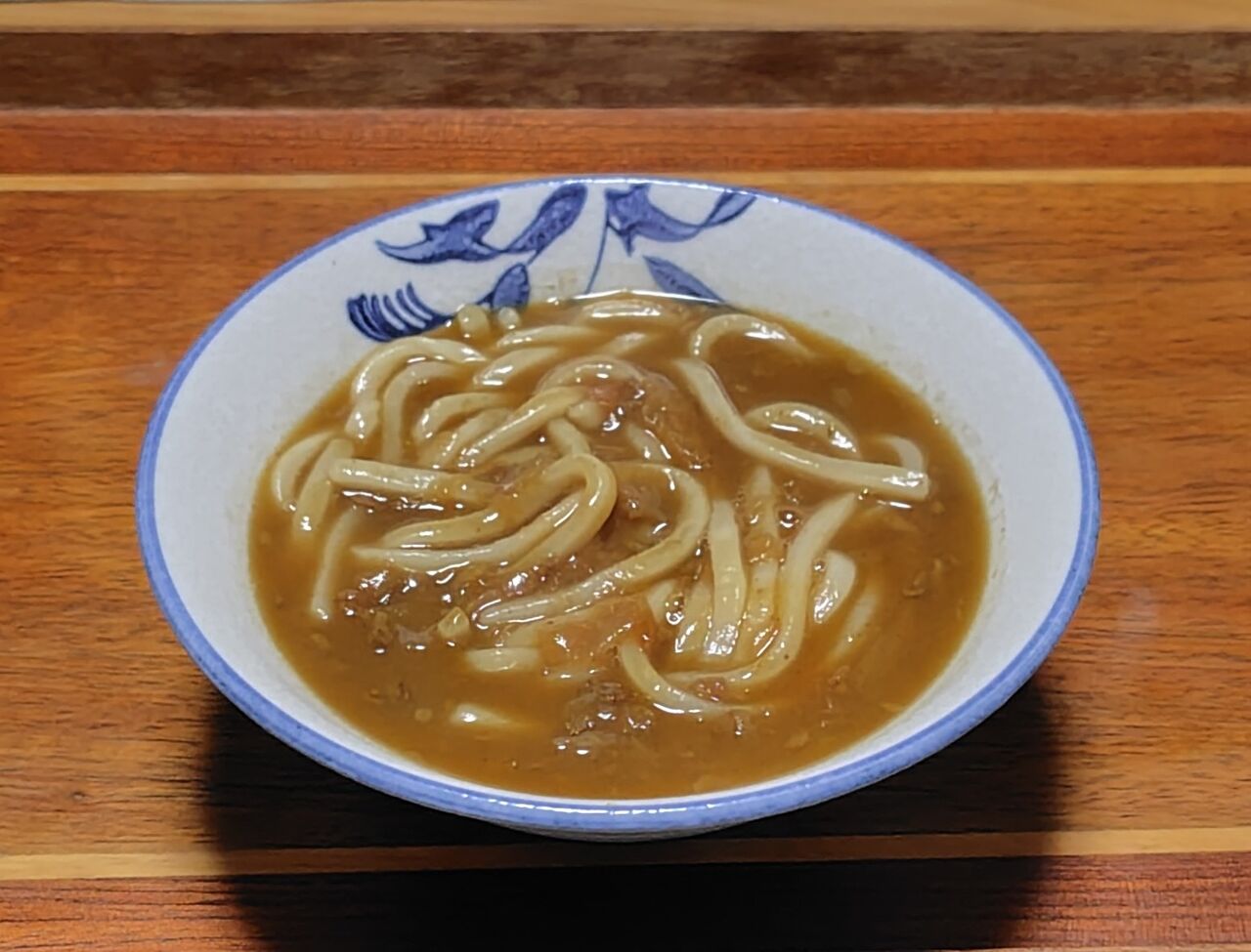 私は、一昨々日のカレーで、カレーうどんを作りました。