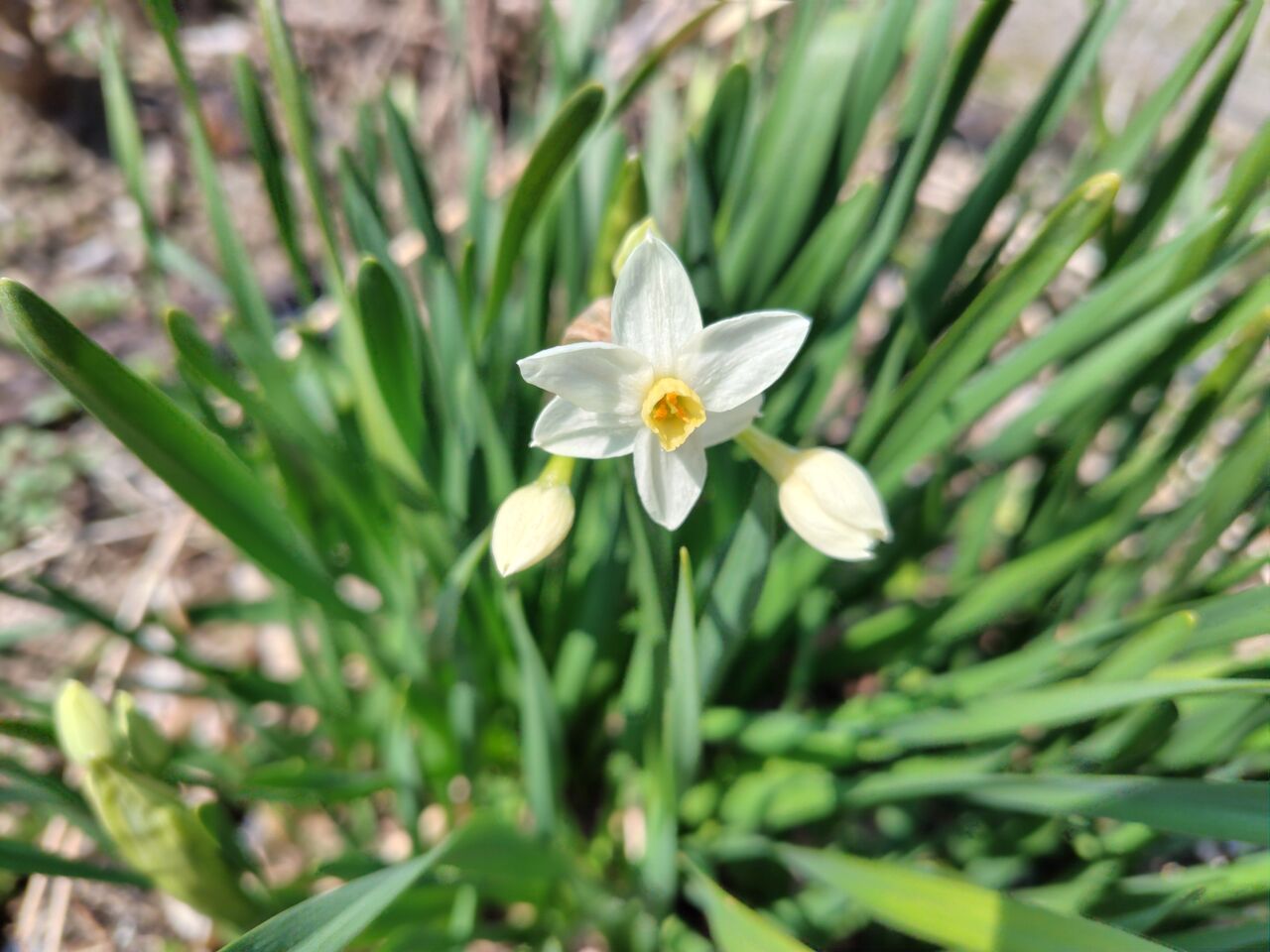 フサザキスイセンに比べて、中心部の黄色が薄いです。