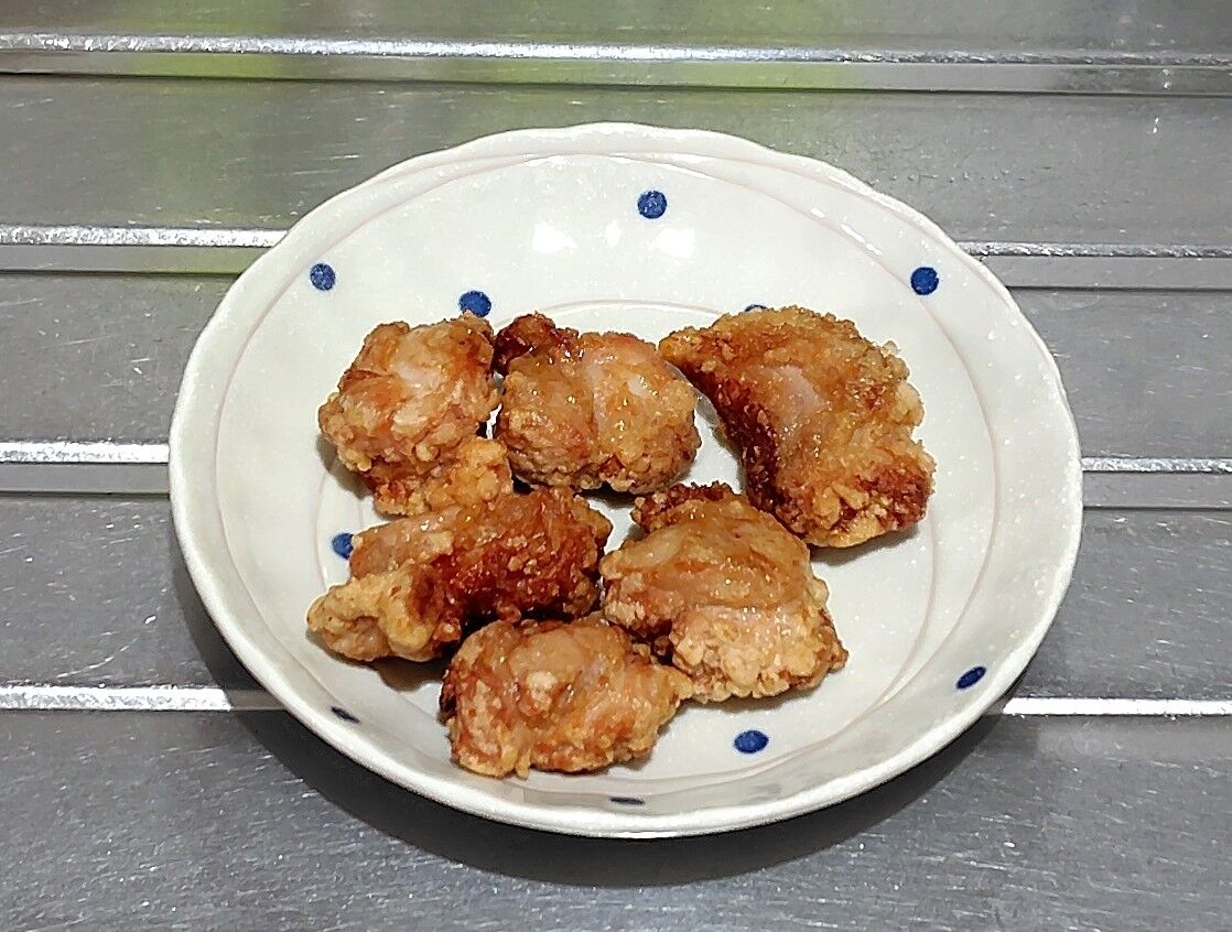 鶏もも肉を1枚買って、2/3はクリームシチュー、残り1/3を唐揚げにしました。