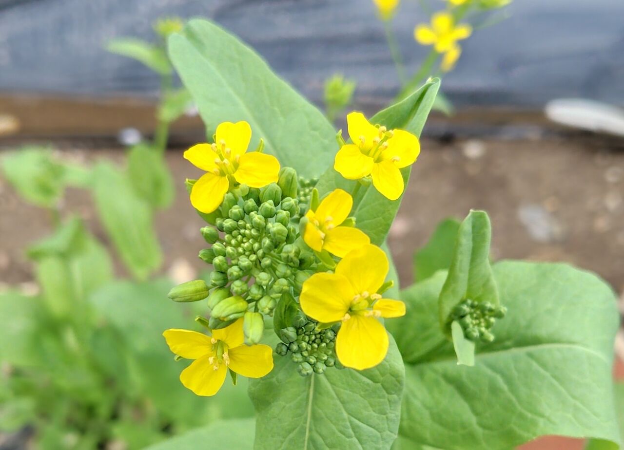 畑に咲いているこの花は、小松菜です。
