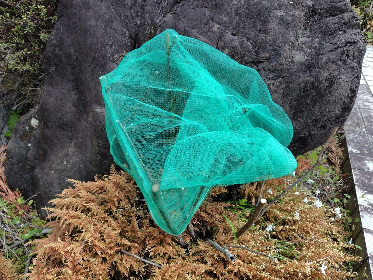 もう手遅れかもしれないですが、ネットを被せました。