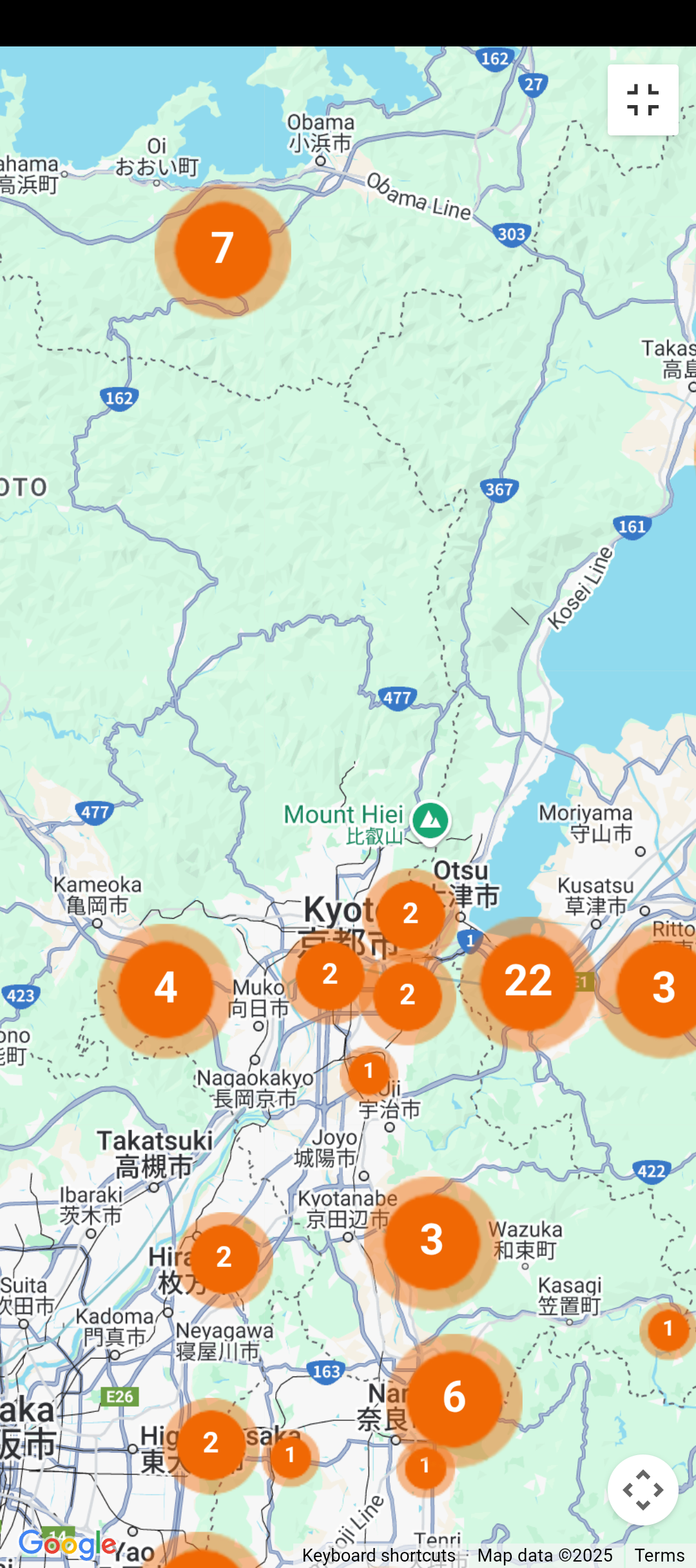 分蜂マップを見ると、京都の平野部の報告は多いですが、山間部の報告はないみたいです。