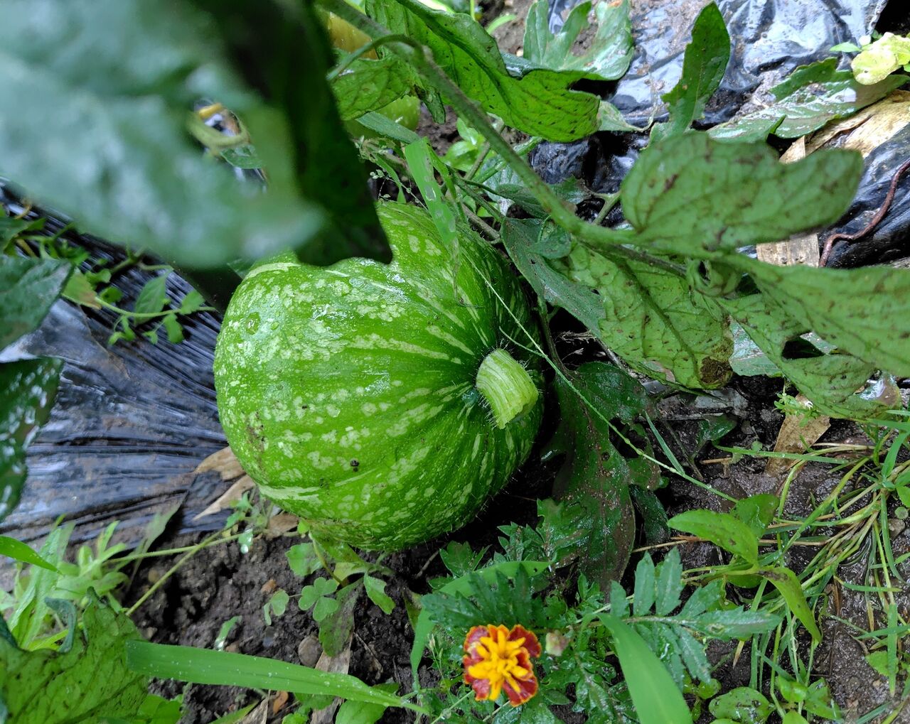 一番大きいかぼちゃの実が1個、無くなっていました 😱