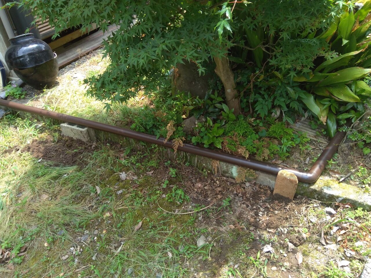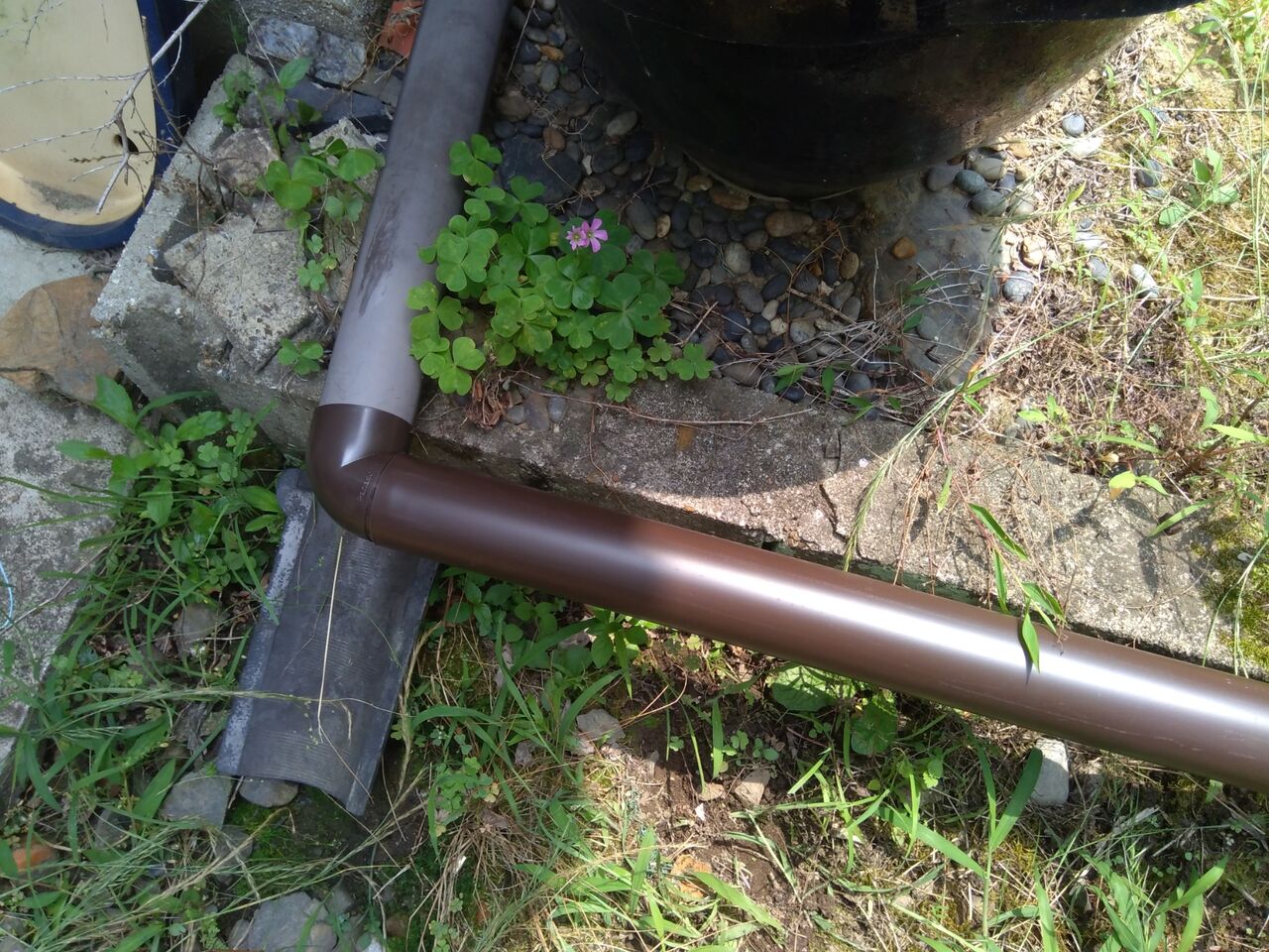 ホームセンターで、竪樋とエルボを購入して繋ぎました。