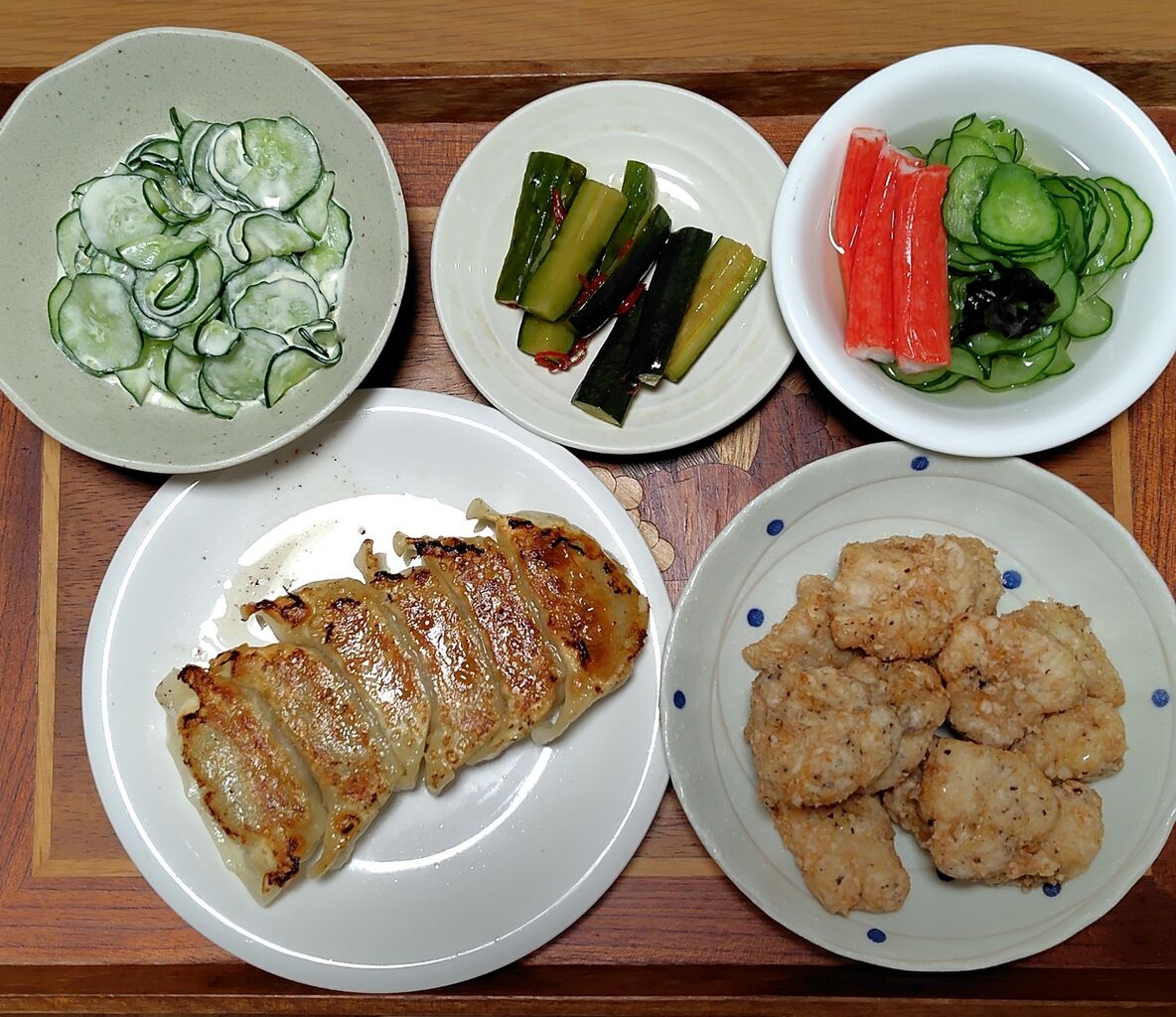 晩ごはんは、キュウリづくしです。
