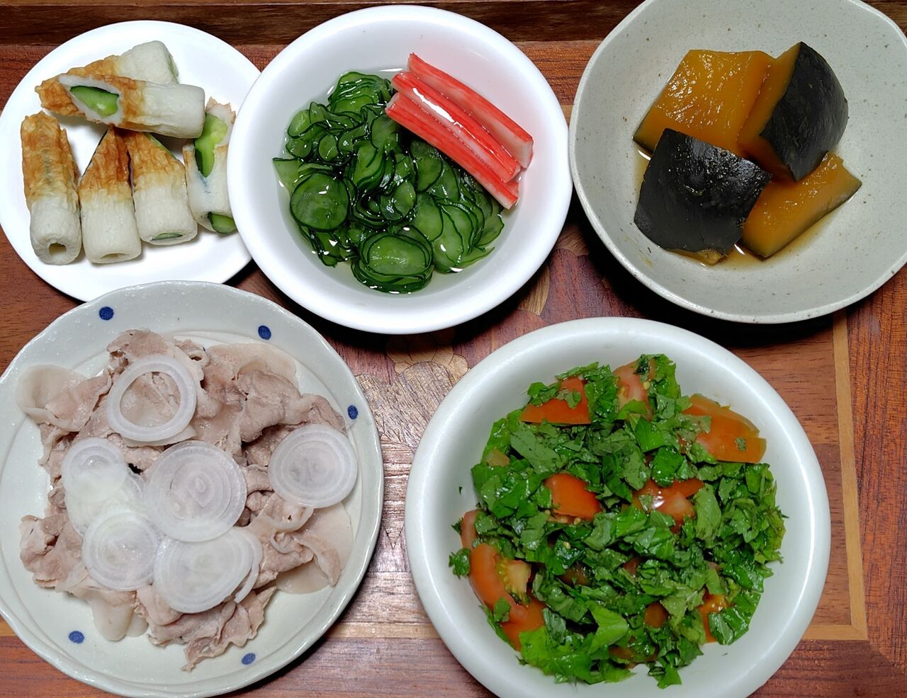 左上は、竹輪の穴にキュウリを突っ込みました。