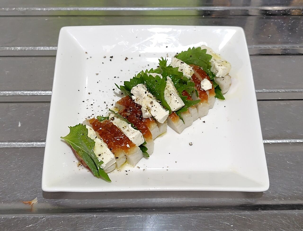 蒲鉾に大葉とクリームチーズを挟みました。