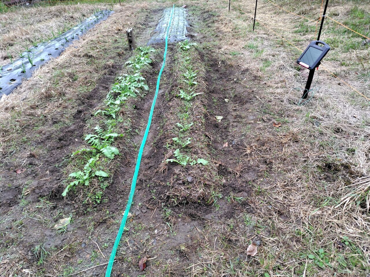 昨朝、玉ねぎ苗の畑に水やりをしたら、散水チューブが破裂しました。