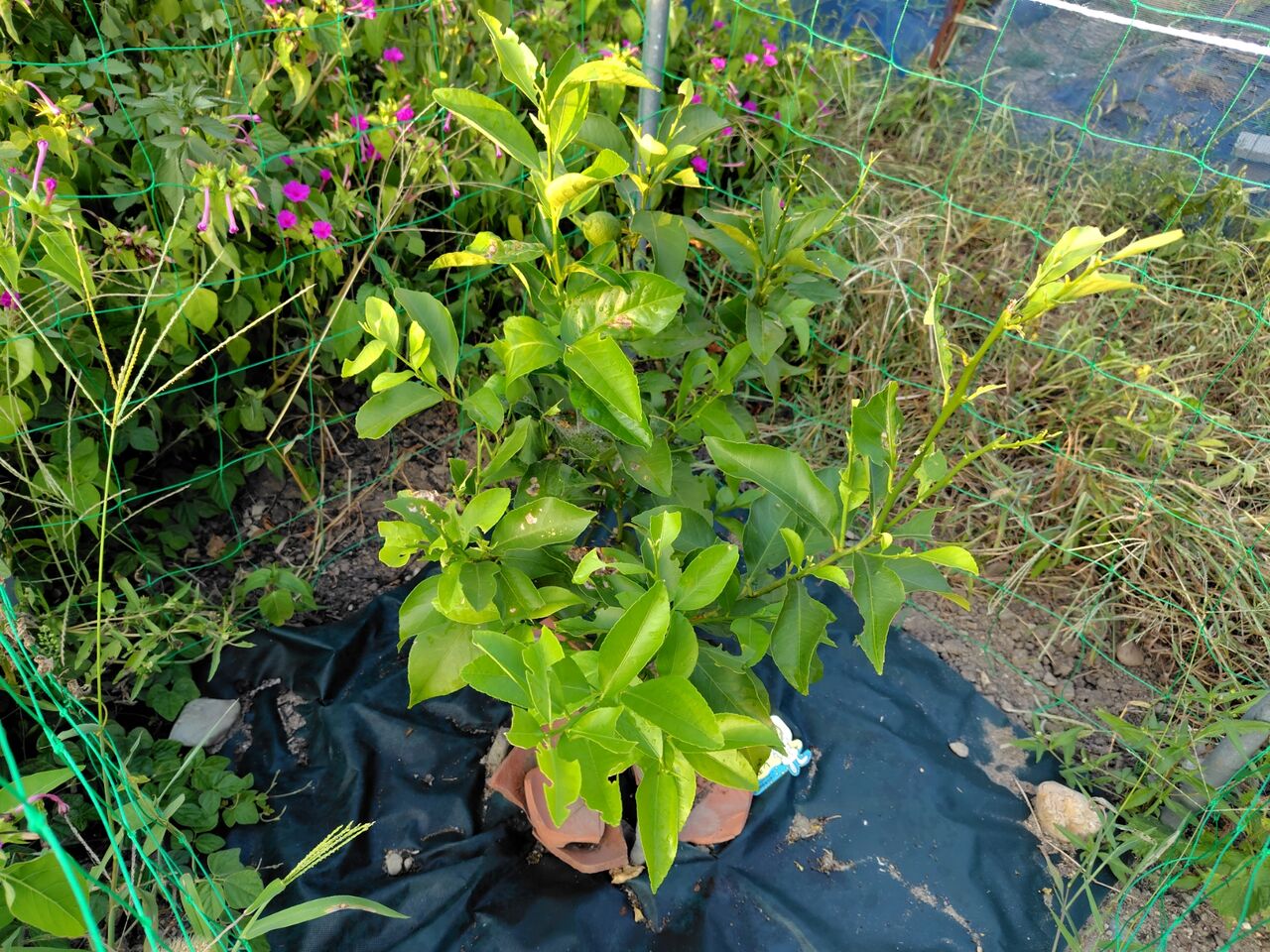 (鉢植えのレモンを畑に植え替えた)