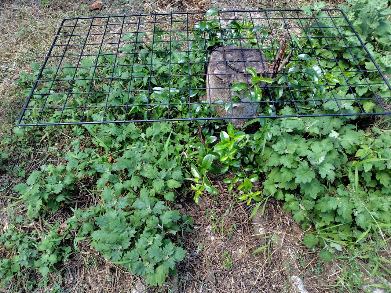 裏庭の菊の間に生えている草の草むしりをしました。