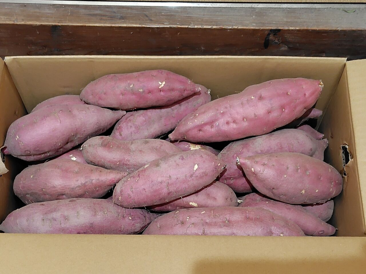 家に帰ったら、玄関にサツマイモの入ったダンボールがありました。