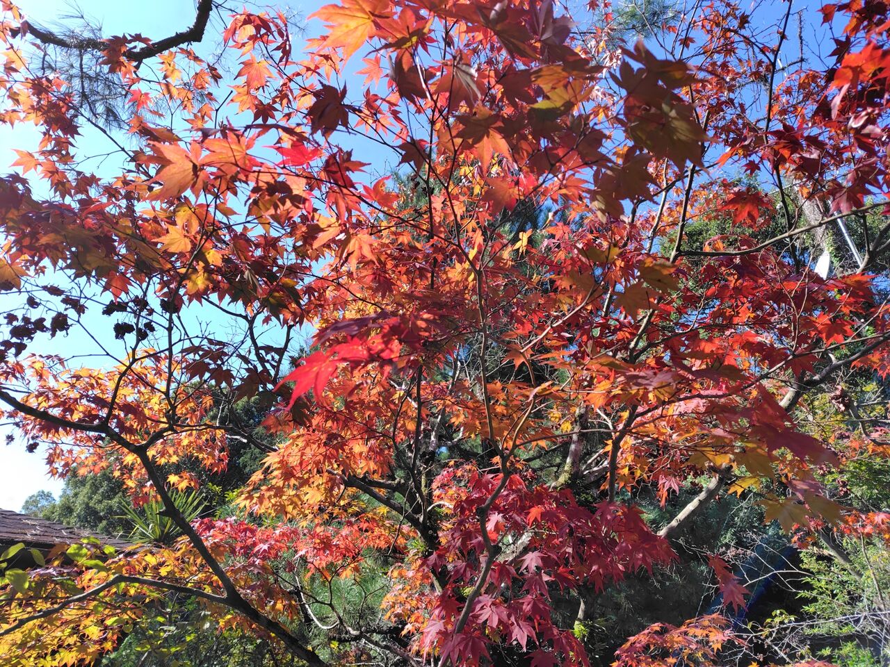 他のモミジは、まだ緑色です。