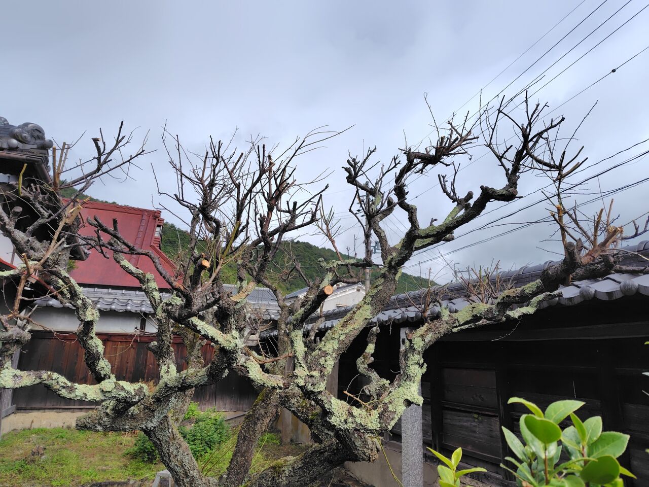 小梅と同じ手順で、チェーンソー、ノコギリ、剪定バサミ、高枝バサミで枝を落としました。