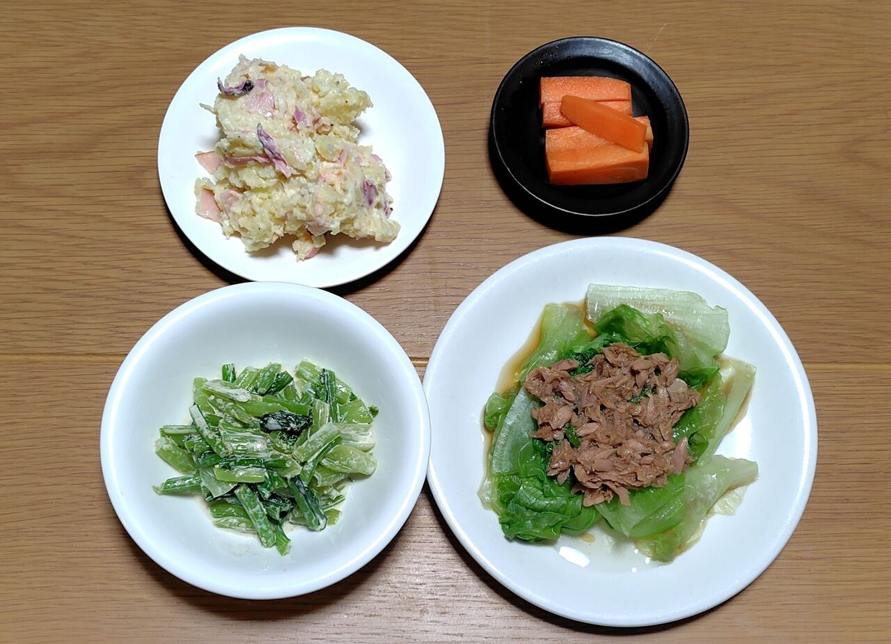 右下は、茹でたレタスに、シーチキンと醤油をかけただけです。