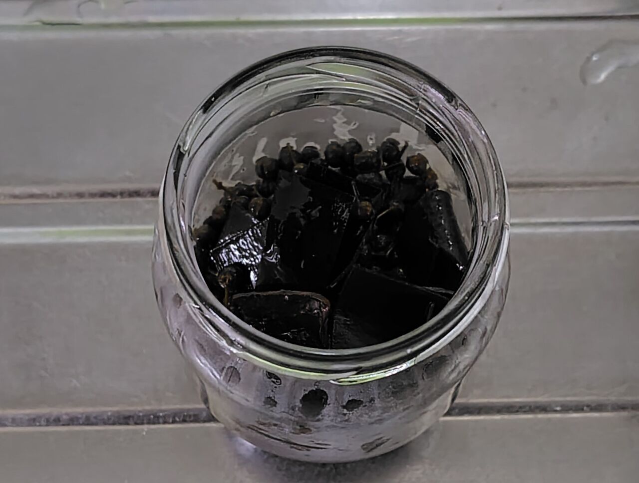 ジャムの空瓶に入れて、冷蔵保存しました。