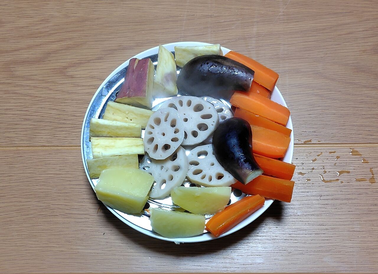 メインは、お袋の好きな野菜の天ぷらにしました。