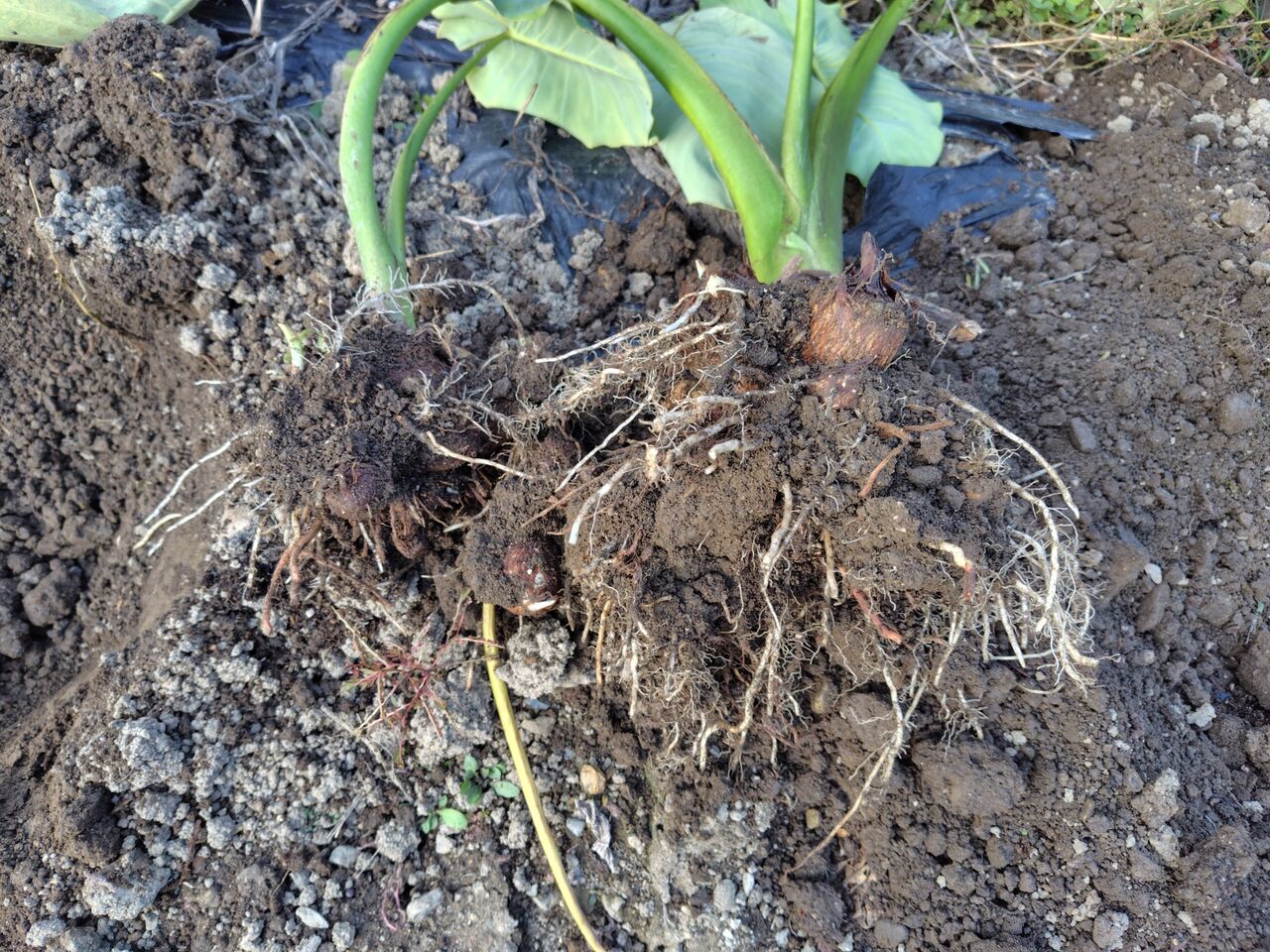 昨日、畑の里芋を掘りました。