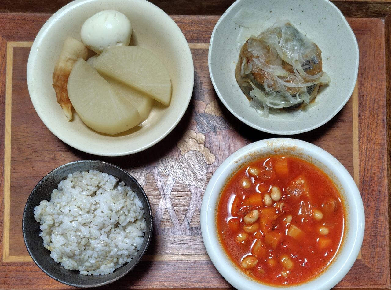右下は、一昨日の残りのミネストローネです。