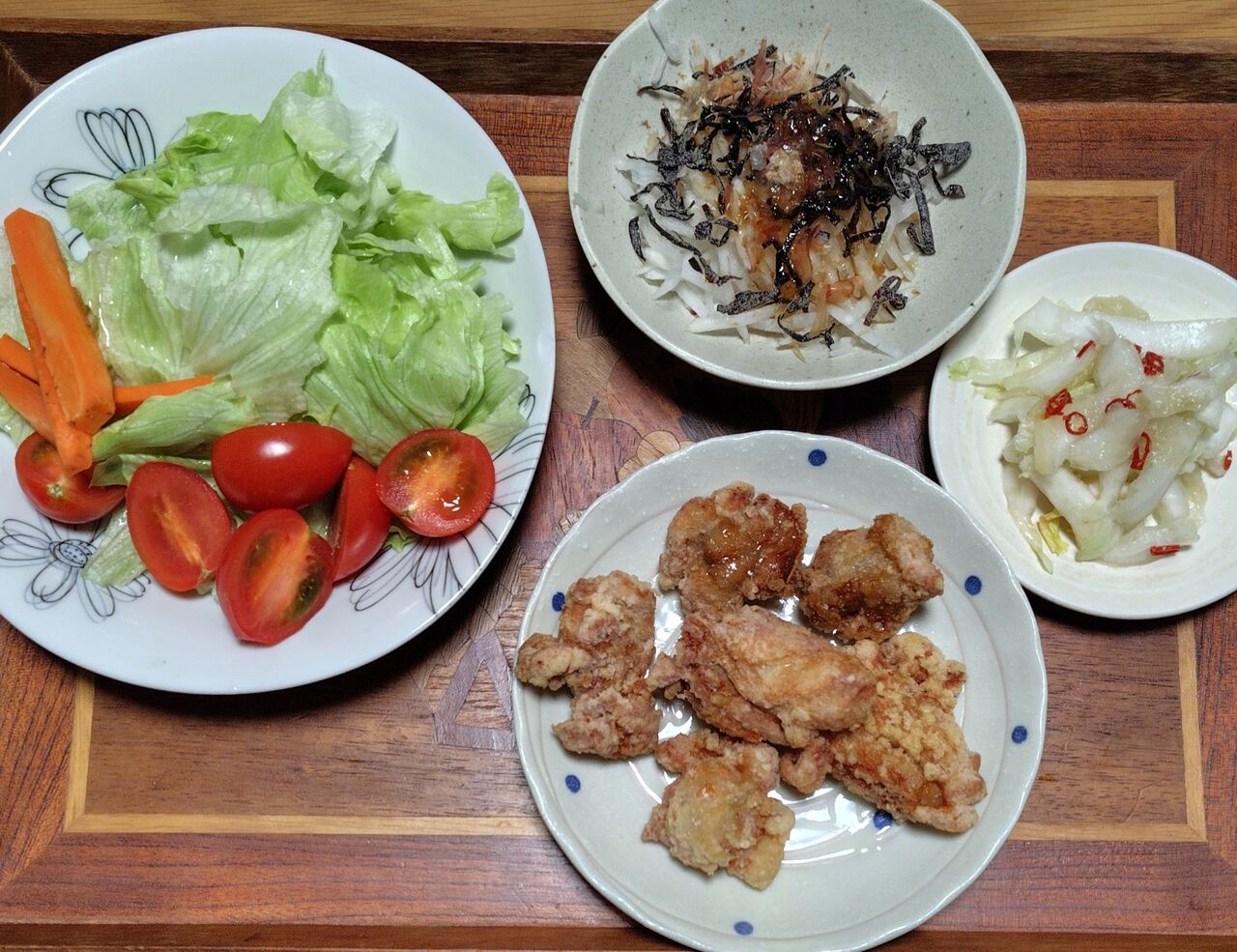右側は、特売で買った白菜の白い部分の浅漬けです。