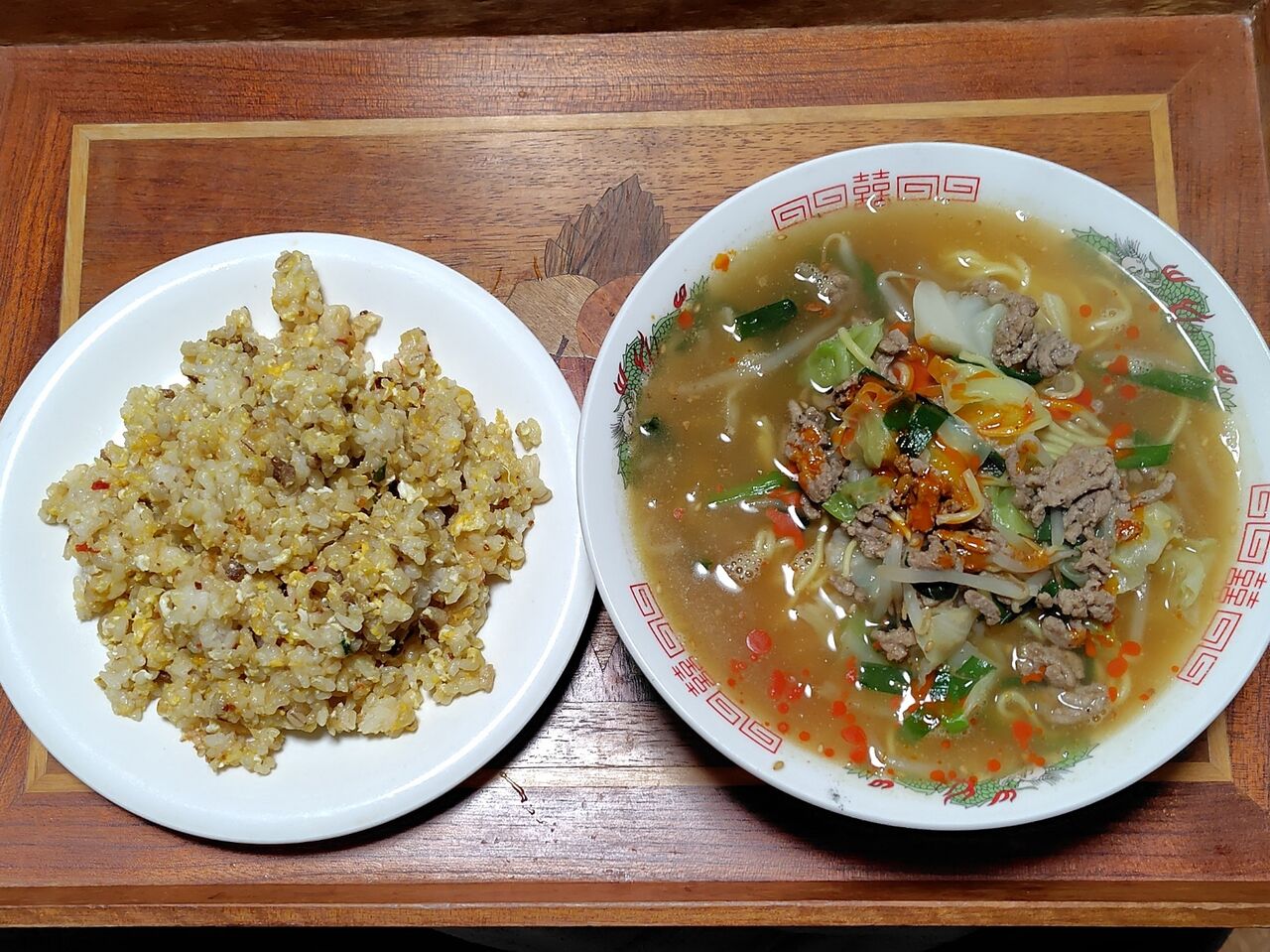 昨日は禁酒日なので、ラーメンと炒飯のセットメニューです。