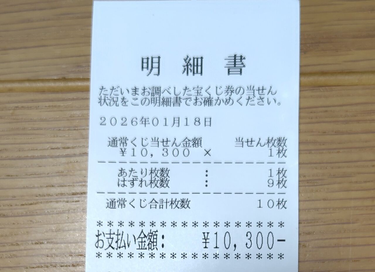 明細書には、あたり枚数が1枚となっていますが、お支払い金額は10,300円になっています。