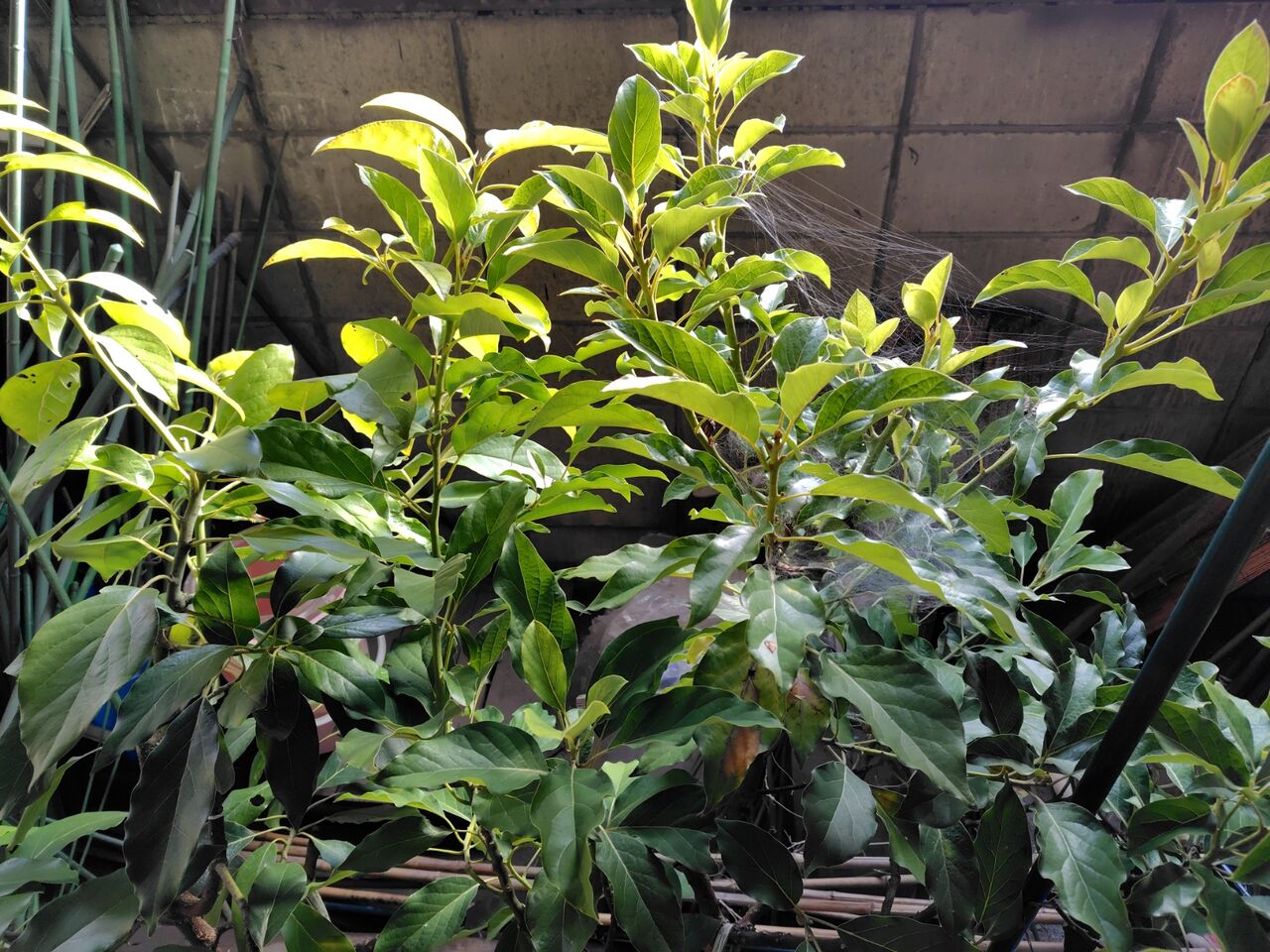 倉庫で越冬中の鉢植えのアボカドです。