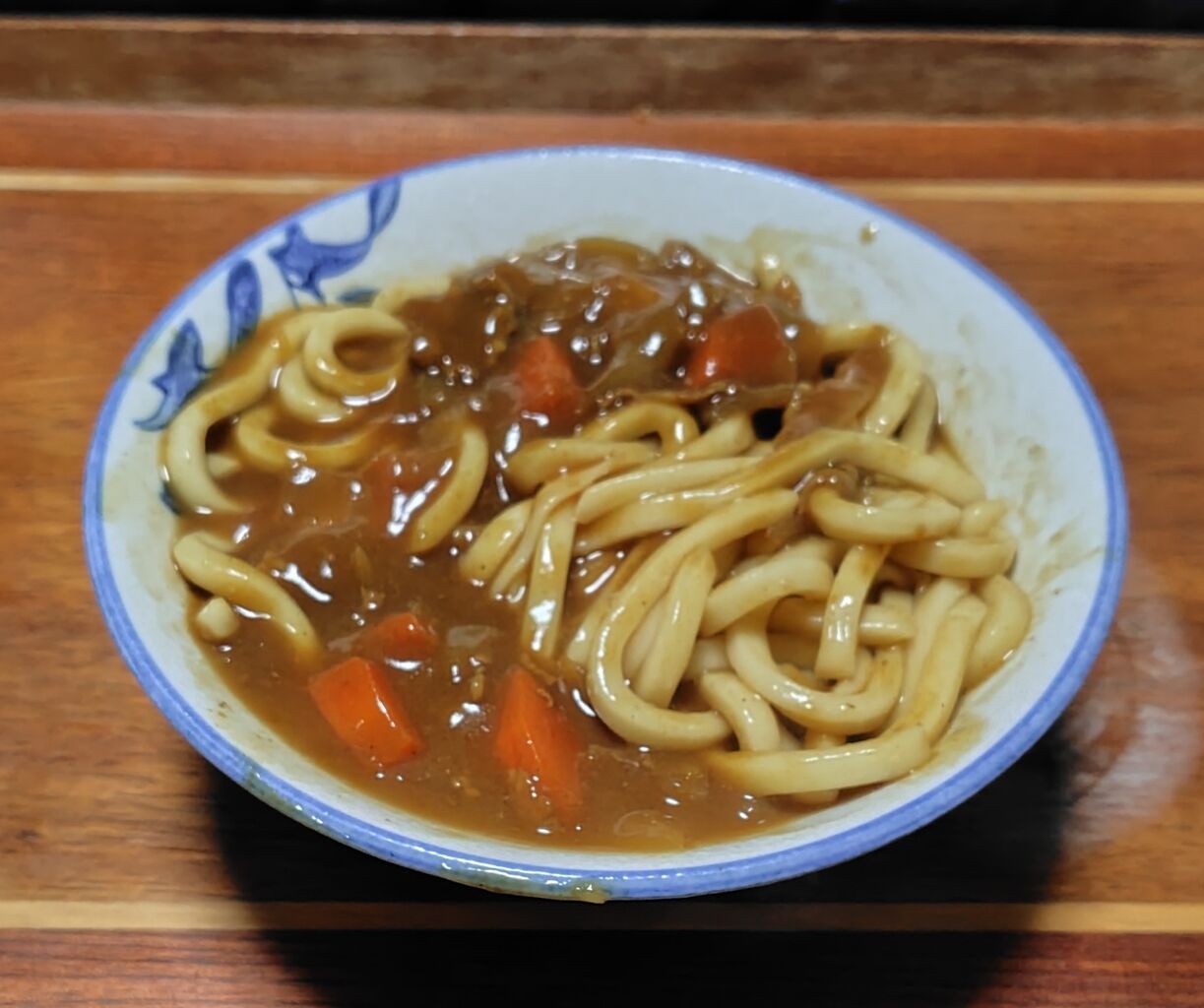 シメは、一昨日のカレーの残りで作ったカレーうどんです。