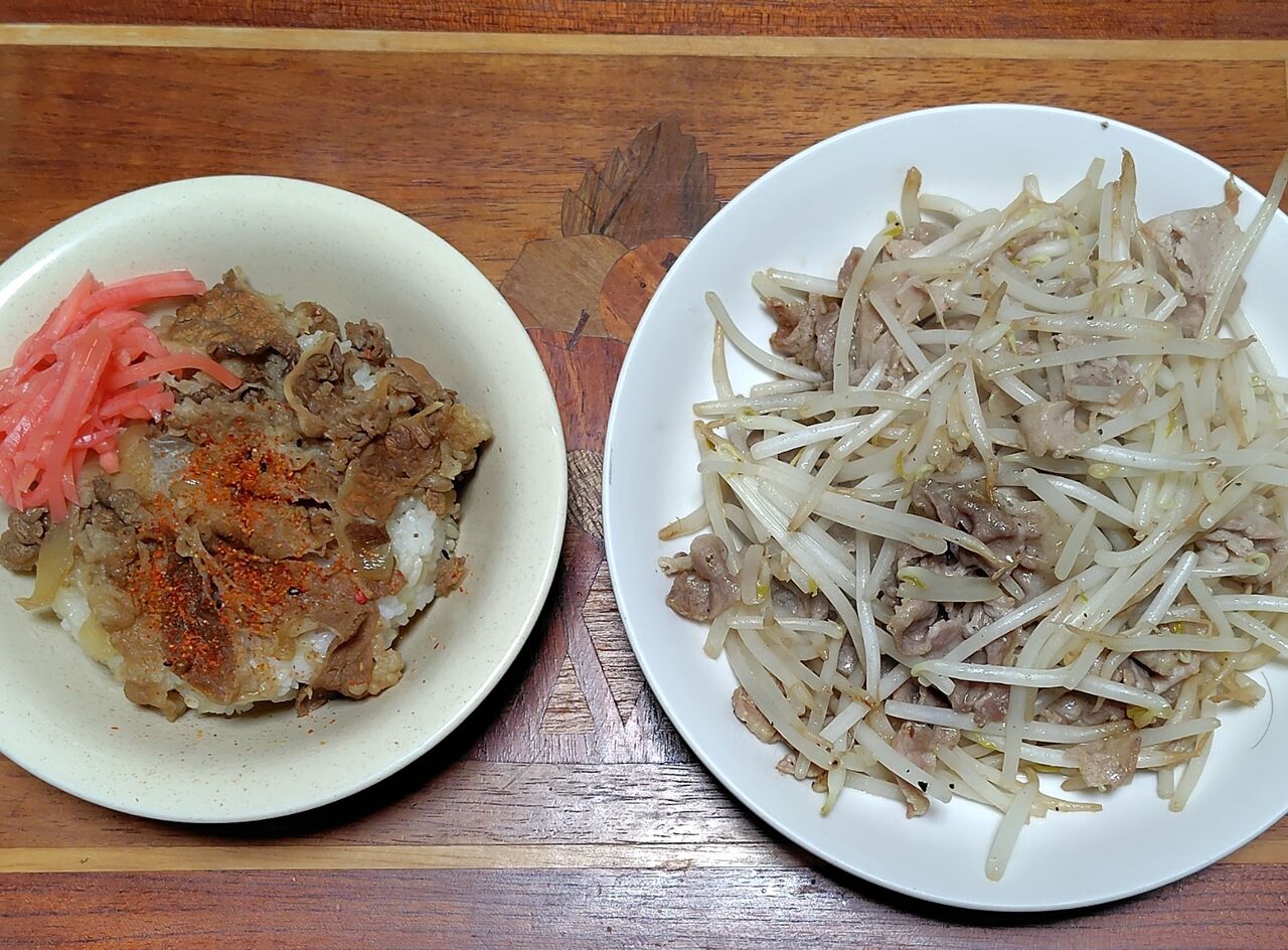 右は、豚スライスともやしの炒め物です。