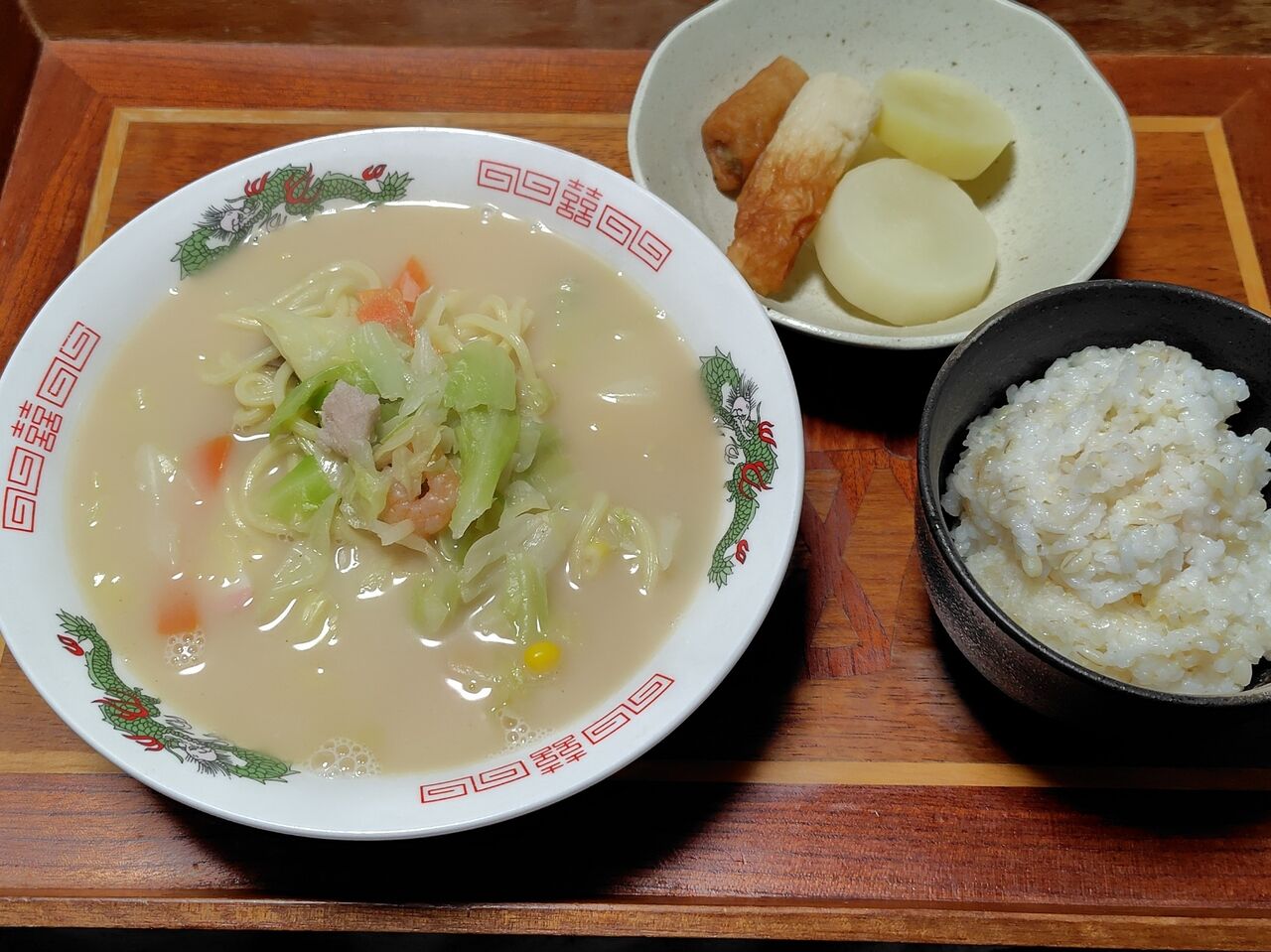メインのちゃんぽんは、スーパーで買った冷凍食品です。