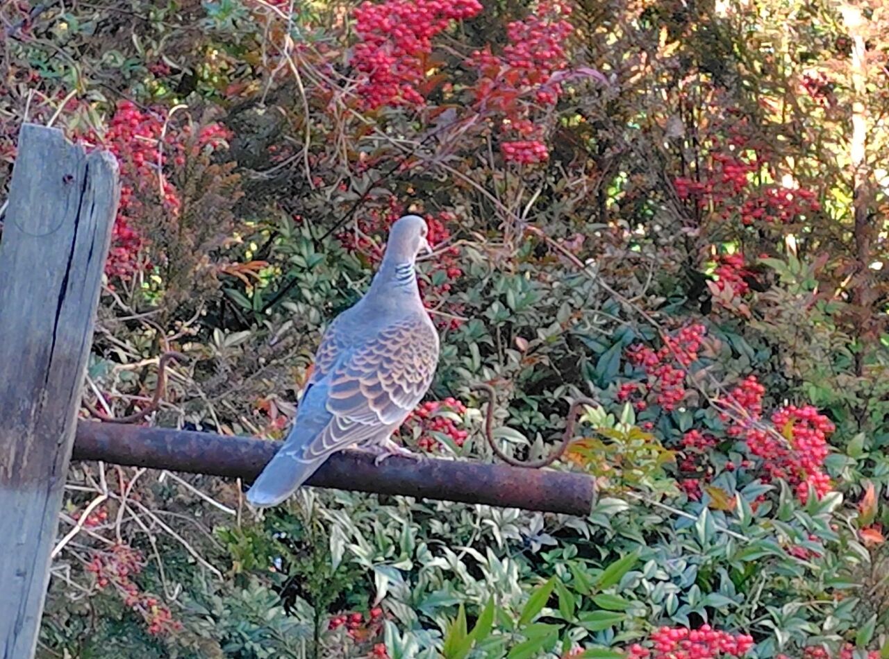 裏庭に、鳩がいました。
