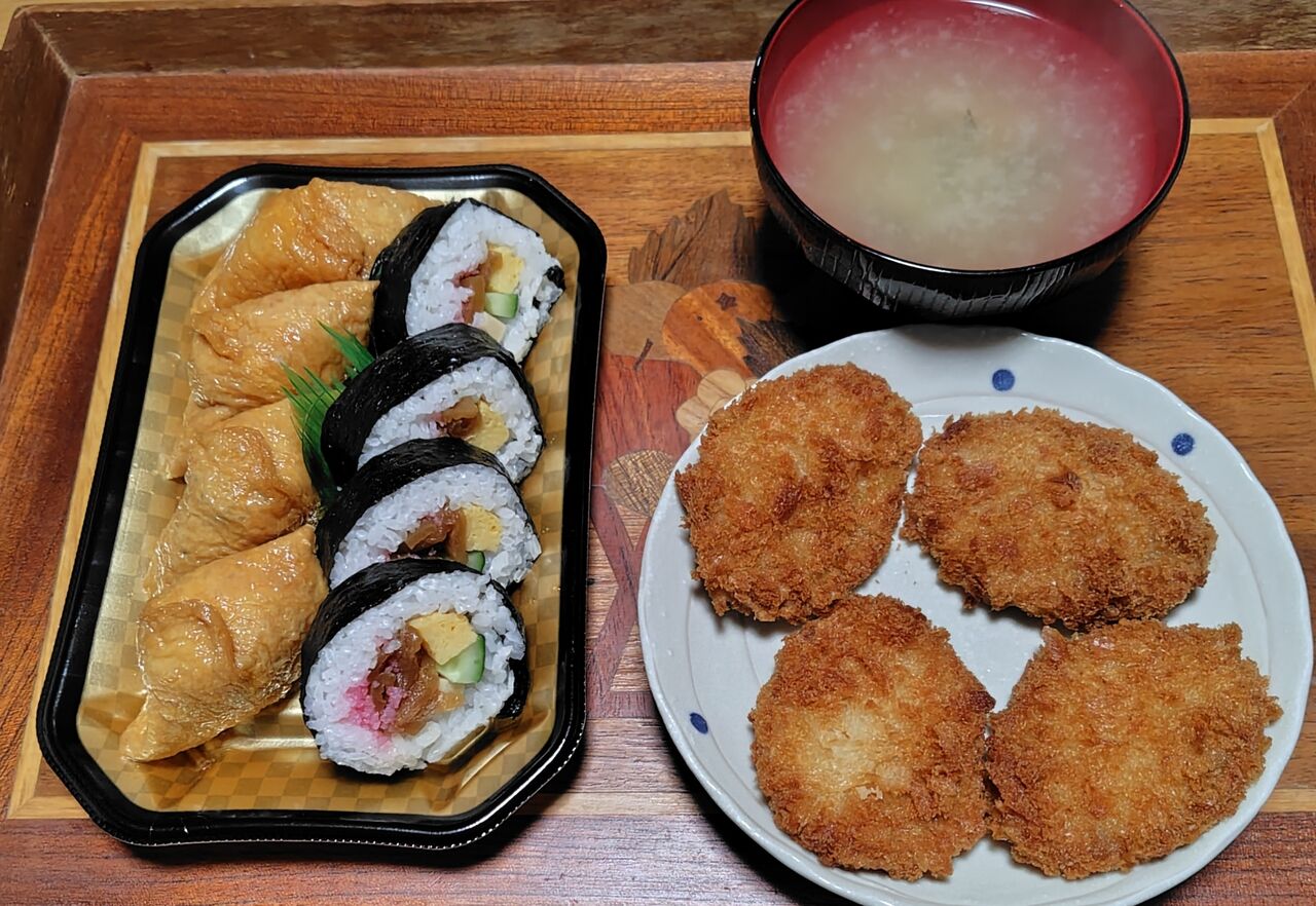 晩ごはんは、珍しくスーパーのお惣菜で済ませました。