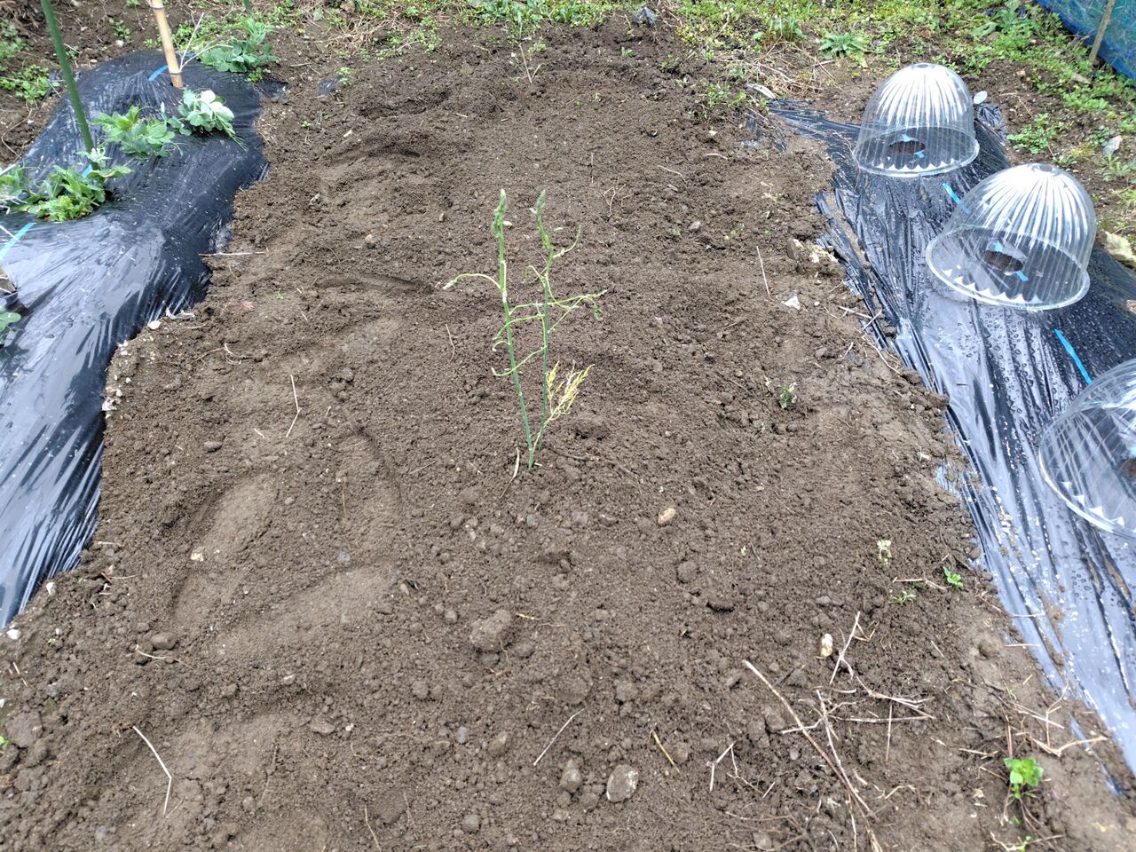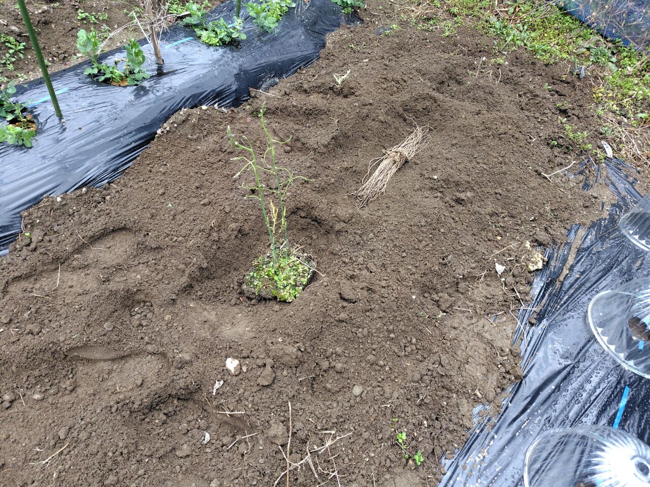 畑にアスパラガスを植えました。
