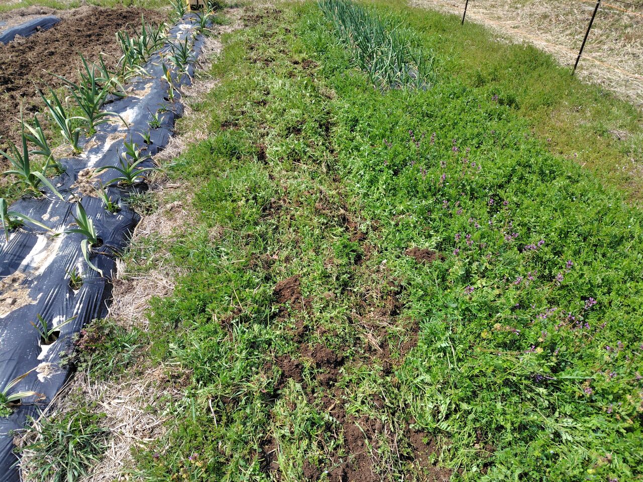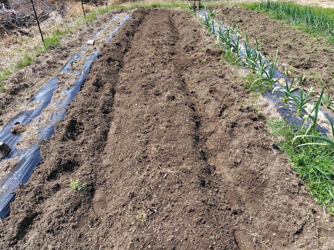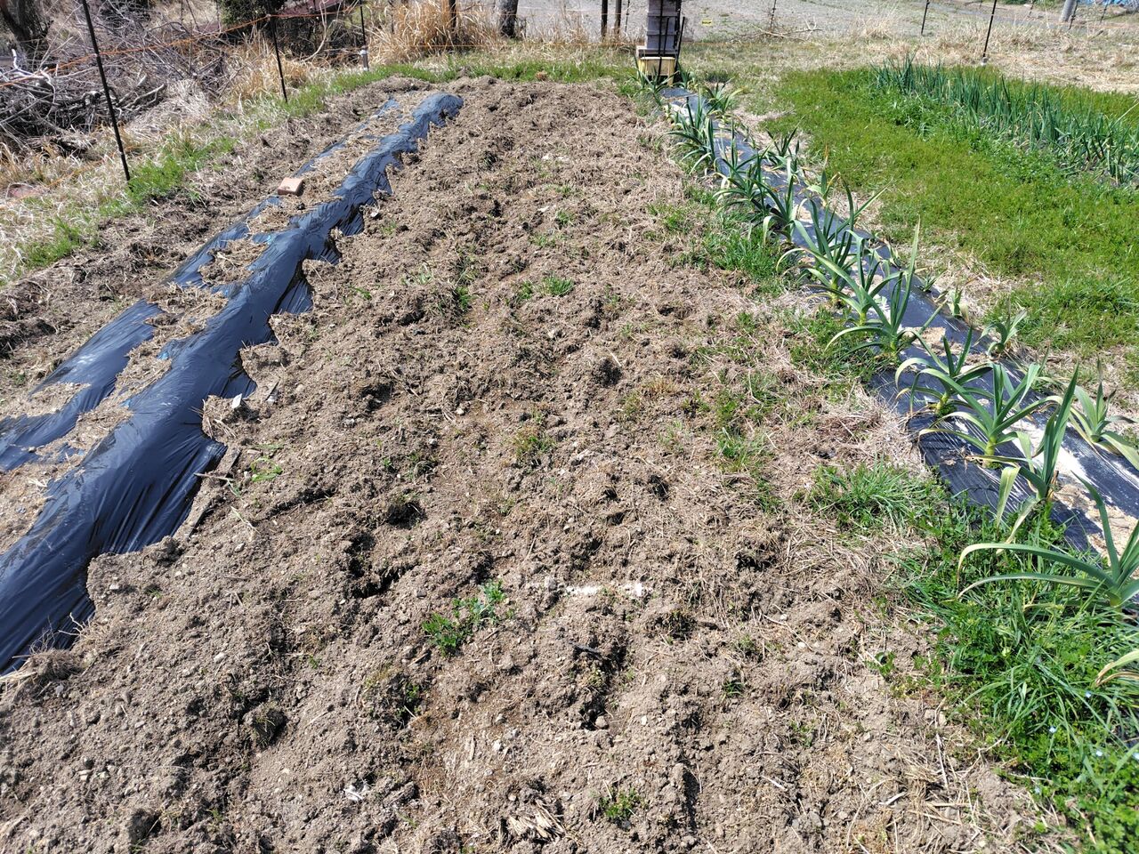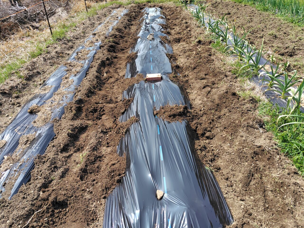 畝にマルチを張りました。