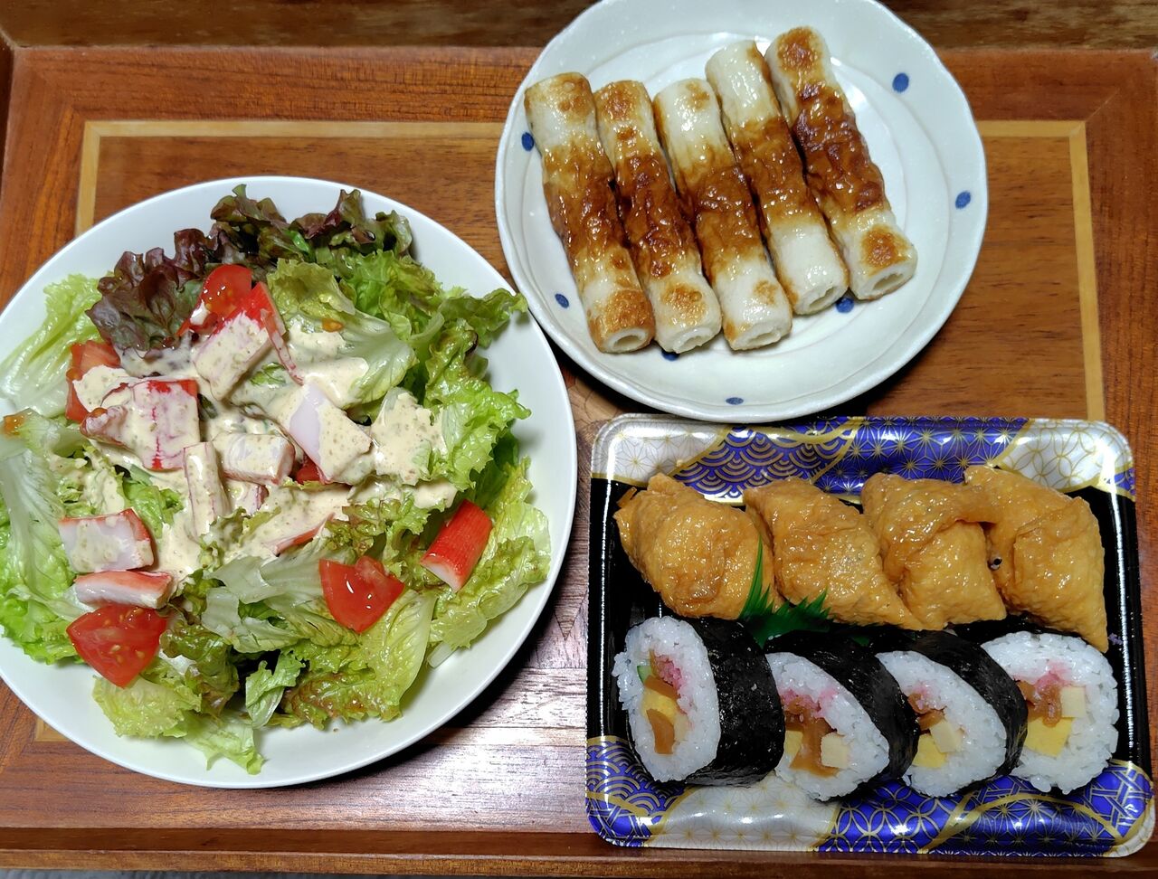 冷蔵庫に残っている野菜、賞味期限が迫った竹輪、近所のスーパーで特売品だった助六です。