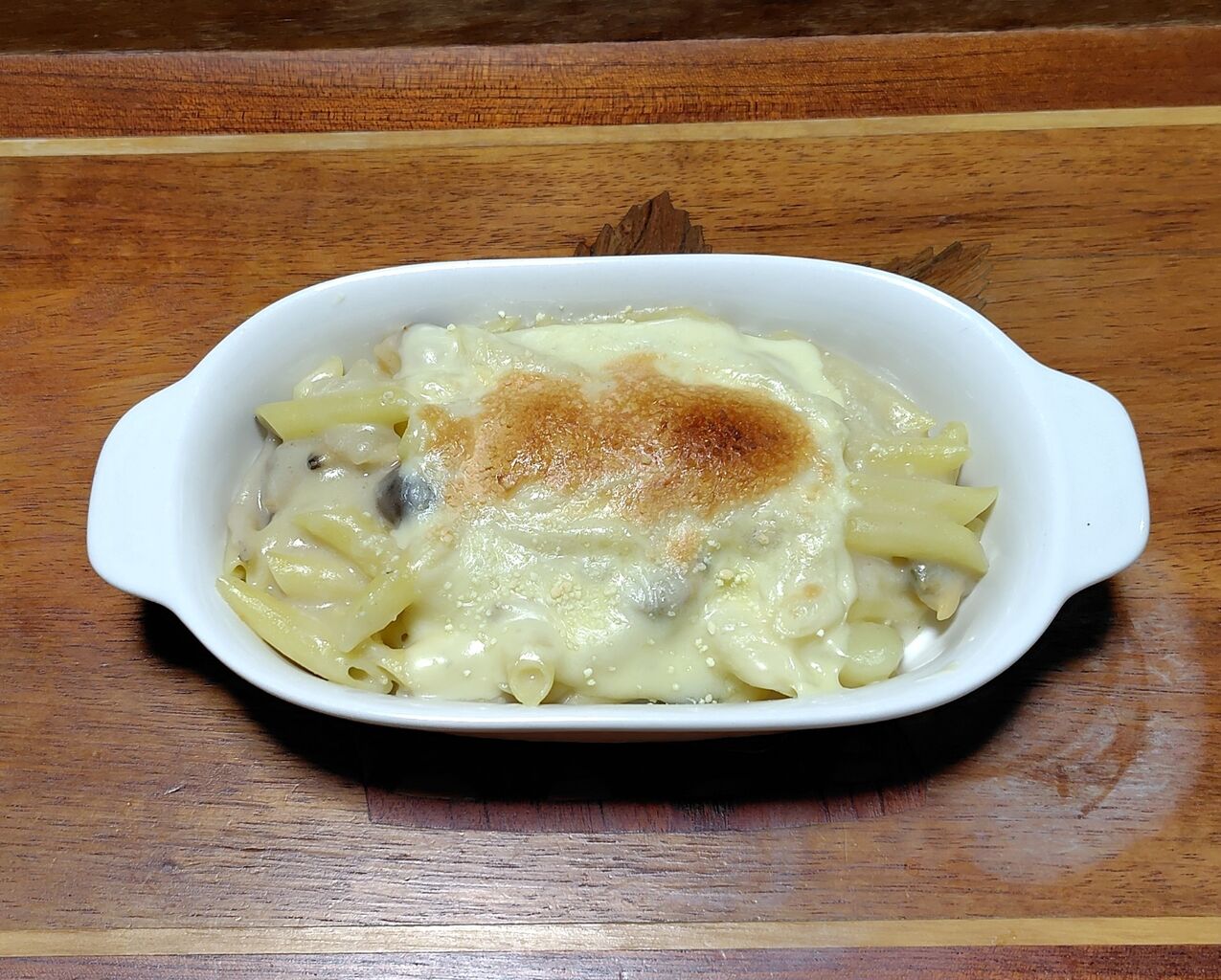 一昨々日に作ったクリームシチューの残りとペンネで作りました。